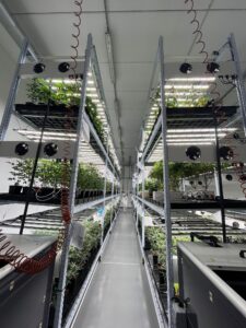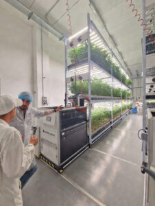 AeroXp rappresenta un sistema multilivello di irrigazione a goccia (drip irrigation) intelligente, progettato per coltivazioni verticali ad alta densità in ambiente controllato GMP/GACP.